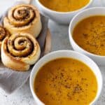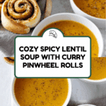 This Spicy Lentil Soup served with Curry Pinwheel Rolls is a vibrant, comforting meal packed with warming spices. The creamy red lentil soup is infused with curry paste and fresh vegetables, perfectly complemented by soft, flavorful bread rolls swirled with curry paste and baked golden. Ideal for a cozy lunch or dinner that satisfies with nutrition and robust flavors.