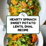 This Spinach, Sweet Potato & Lentil Dhal is a comforting and nutritious dish full of warming spices and vibrant flavors. It’s perfect for a cozy weeknight meal or a make-ahead lunch that tastes even better the next day.