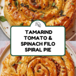 This sticky tamarind tomato and spinach whirl is a vibrant, savory dish perfect for sharing. Combining tangy roasted tomatoes with spinach, feta, and fragrant spices, all wrapped in crisp filo pastry, it’s a stunning centerpiece for any meal.