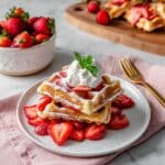 Delight in these Strawberry Stuffed Waffles, featuring fluffy buttermilk biscuit dough filled with sweet strawberry pie filling. Crisped to golden perfection in a waffle iron and topped with fresh strawberries and a dusting of powdered sugar, these waffles make a deliciously easy and fruity breakfast or brunch treat.