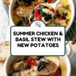 This Summer Chicken & Basil Stew is a comforting yet light dish perfect for warm evenings. Tender chicken thighs simmered with fresh peppers, new potatoes, and fragrant basil create a flavorful meal that’s easy to prepare and satisfying to eat.