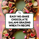 Keywords: chocolate salami, dessert wreath, grazing board dessert, festive dessert, no bake dessert, chocolate wreath, holiday dessert