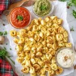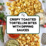 Keywords: toasted tortellini, baked tortellini, tortellini appetizer, cheesy tortellini bites, Italian appetizer, Buitoni tortellini recipe, crunchy tortellini, dipping sauces