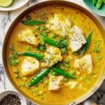 This turmeric, ginger & coconut fish curry is a vibrant and flavorful dish that combines fragrant spices with creamy coconut milk. Perfectly tender cod and fresh peas make it a wholesome and comforting meal that’s quick to prepare.