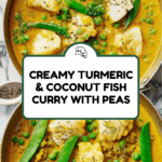 Keywords: turmeric fish curry, coconut fish curry, cod curry recipe, Indian-inspired fish dish, healthy fish curry, ginger turmeric curry, seafood curry with peas
