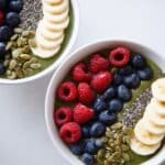 Store any leftover smoothie bowls in an airtight container in the refrigerator for up to 24 hours. Re-stir before eating as chia seeds may cause thickening. Best enjoyed fresh for the smoothest texture.