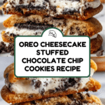 Keywords: Oreo cheesecake cookies, cheesecake stuffed cookies, chocolate chip cookies with cheesecake filling, stuffed cookies, decadent cookies, Oreo desserts
