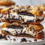 Keywords: Oreo cheesecake cookies, cheesecake stuffed cookies, chocolate chip cookies with cheesecake filling, stuffed cookies, decadent cookies, Oreo desserts