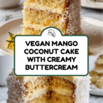Keywords: vegan mango cake, coconut cake, dairy-free cake, vegan dessert, tropical cake, mango buttercream, egg-free cake