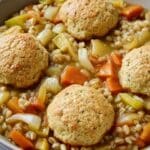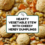 This hearty Vegetable Stew with Herby Dumplings is a comforting dish perfect for cooler days. Packed with a variety of root vegetables and pearl barley, simmered slowly in a flavorful broth infused with white wine and fresh herbs, it’s topped with golden, cheesy dumplings studded with rosemary and thyme. A nourishing, tasty vegetarian meal that combines rustic flavors with a delightful texture contrast.