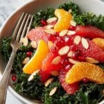 This Winter Citrus Kale Pomegranate Salad is a refreshing and vibrant dish combining hearty kale with juicy citrus fruits, sweet pomegranate seeds, and crunchy toasted almonds. Dressed in a light citrus vinaigrette, it offers a perfect balance of flavors and textures, making it an ideal healthy salad for winter months.