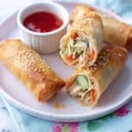 Store any leftover spring rolls in an airtight container in the fridge for up to 2 days. Reheat in the oven at 180°C for 8-10 minutes to regain their crispiness. Avoid microwaving as it can make the pastry soggy.